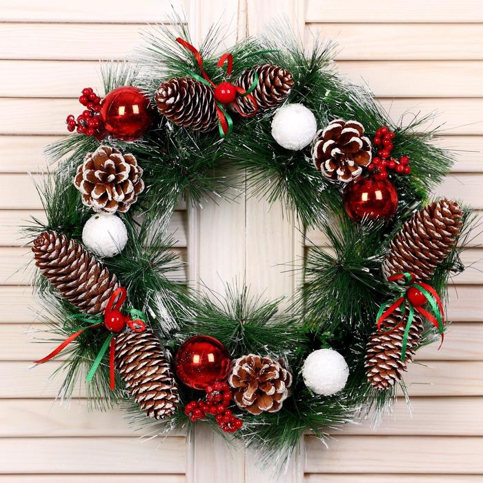 Венок новогодний d=30 см «Зимнее волшебство. Шишечки с шариками»