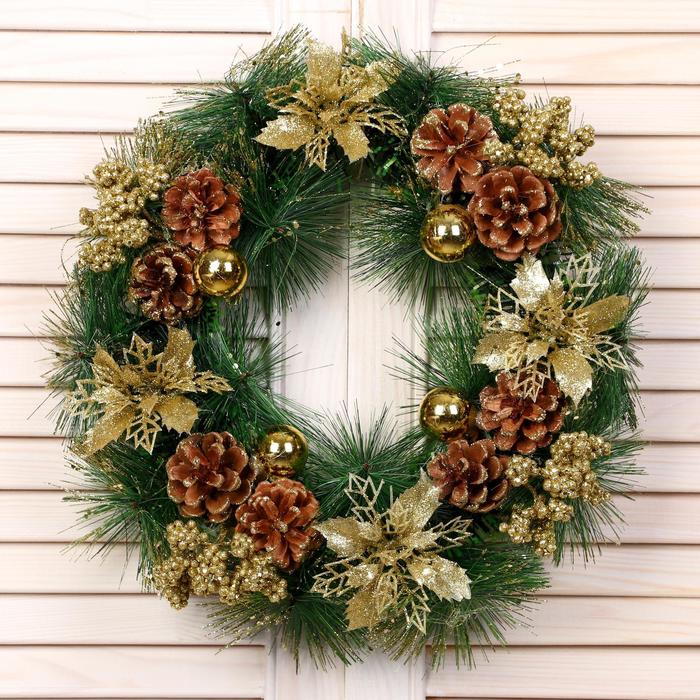 Венок новогодний d=30 см «Зимнее волшебство. Золотое сияние» декор цветы и шишки