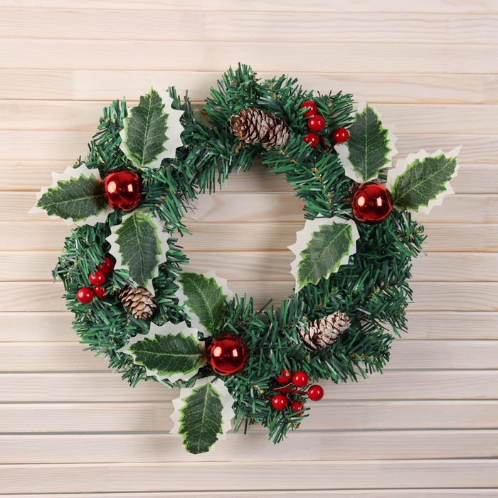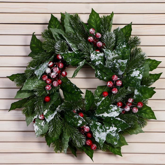 Венок новогодний d=30 см «Зимнее волшебство. Уютная сказка», с листьями и ягодами