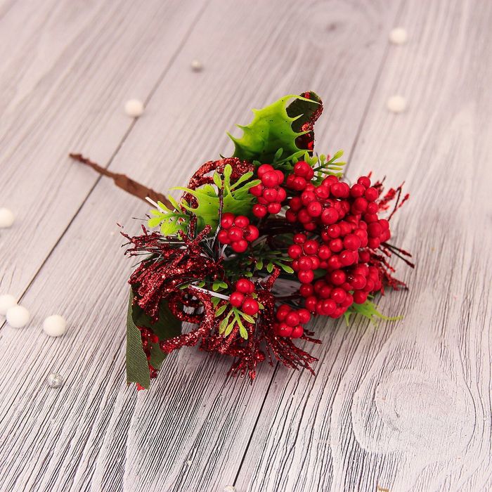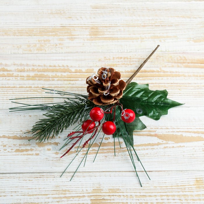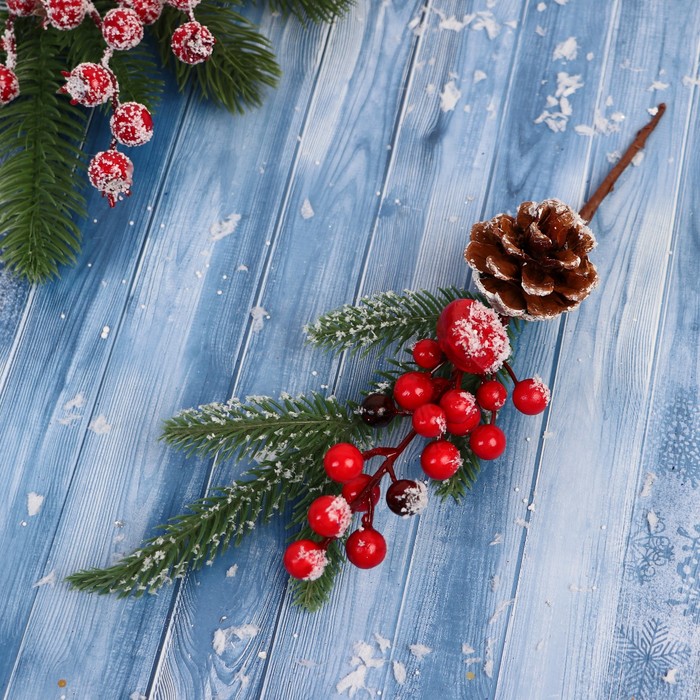 Еловая ветка декоративная «Зимнее волшебство. Грёзы», ягоды, шишка, 26 см