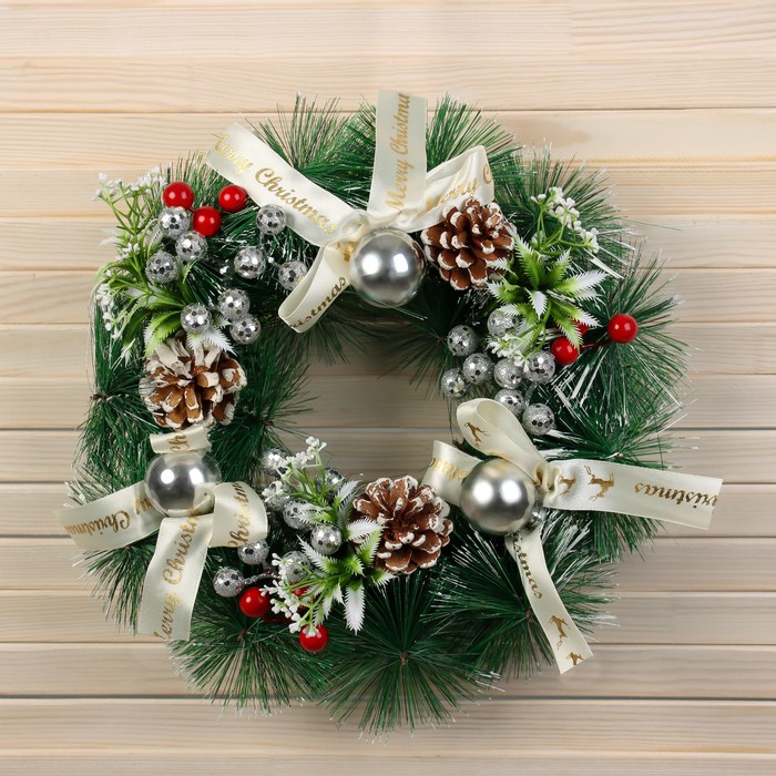 Венок новогодний d=30 см «Зимнее волшебство. Фестиваль блеска», с бантиками и шишками