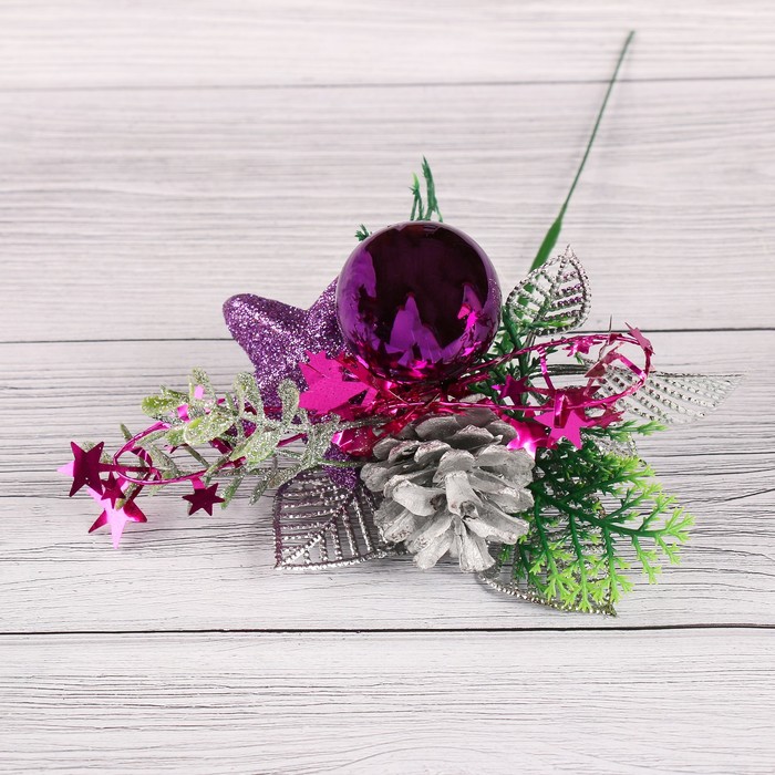 Еловая ветка декоративная «Зимнее волшебство. Сказка», 15 см, сиреневый