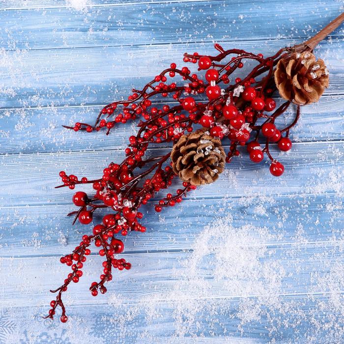 Еловая ветка декоративная «Зимнее волшебство. Очарование», шишки, замёрзшие ягоды, 35 см