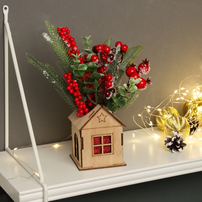 Новогодняя композиция на стол «Зимнее волшебство. Домик» пластик, 23×7.5 см