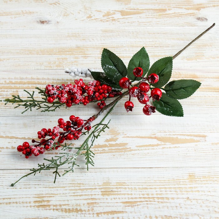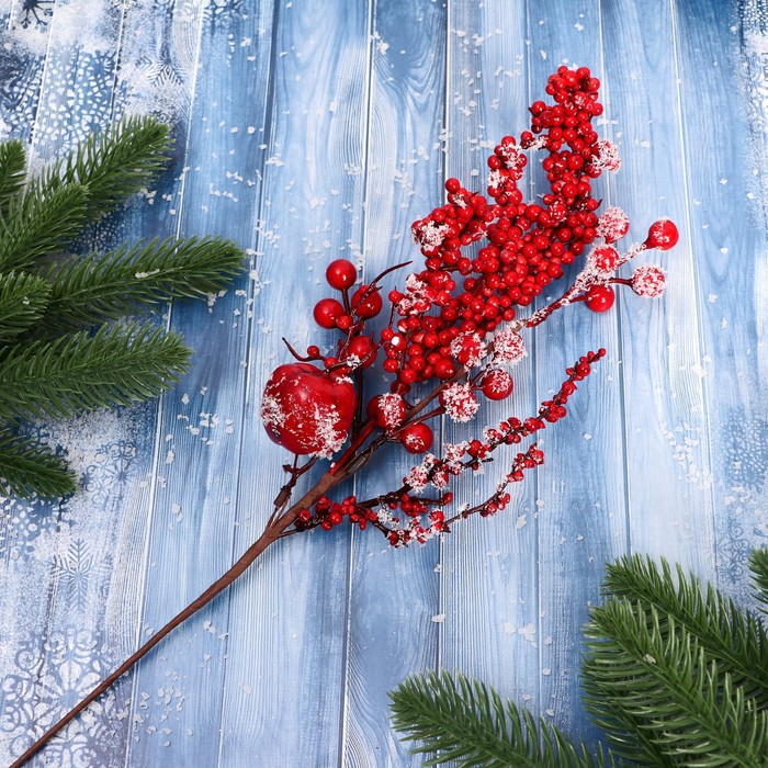 Еловая ветка декоративная «Зимнее волшебство. Грёзы», ягоды, веточки, хвоя, 23 см