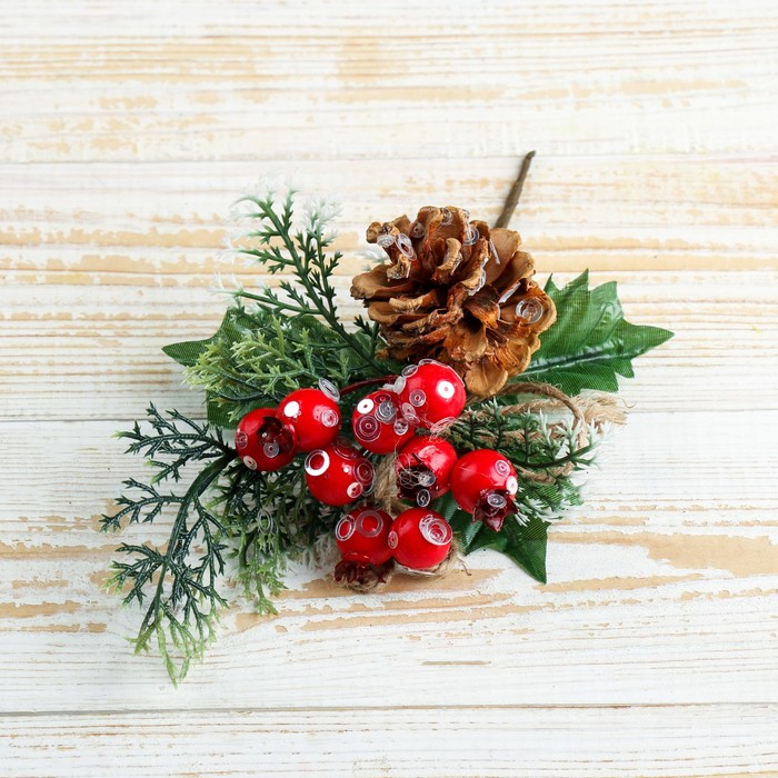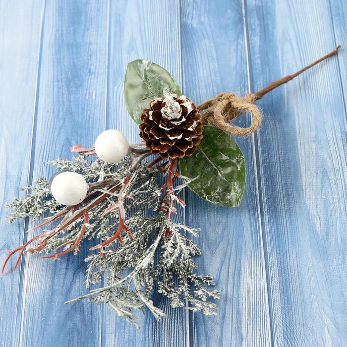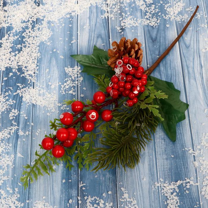 Еловая ветка декоративная «Зимнее волшебство. Магия», хвоя, ягоды, шишка, 27 см