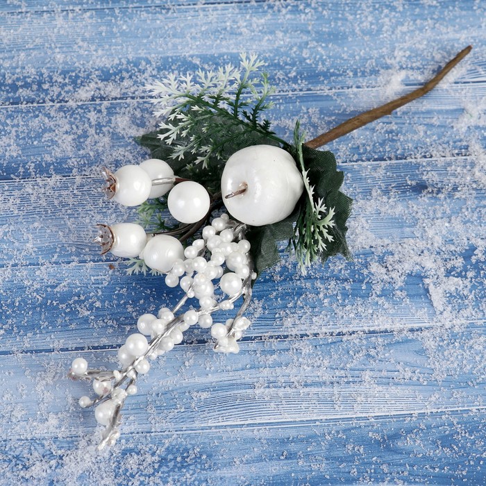 Еловая ветка декоративная «Зимнее волшебство. Грёзы», яблоко в бисере, 15 см
