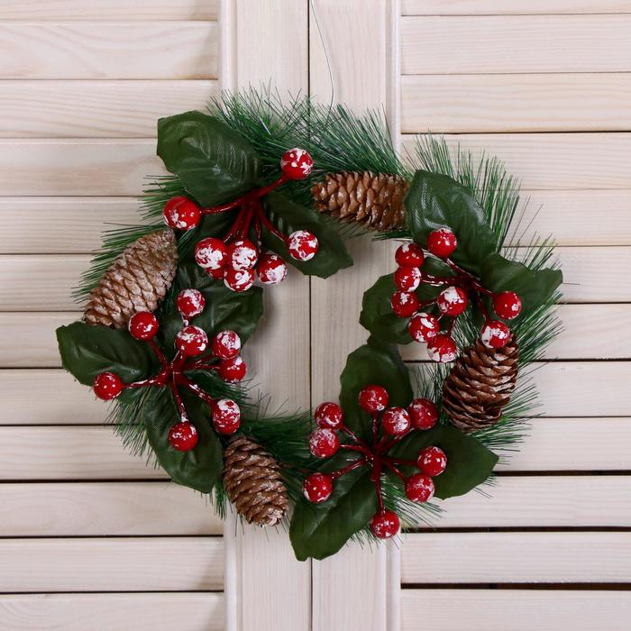 Венок новогодний d=16 см «Зимнее волшебство. Уютная сказка», с ягодами и шишками