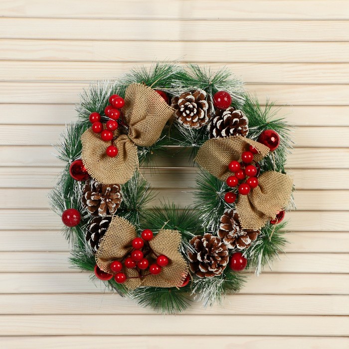 Венок новогодний d=26 см «Зимнее волшебство. Уютная сказка», с ягодами на веточках