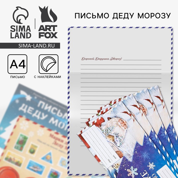 Письмо Деду Морозу, конверт А5, с наклейками «Дед Мороз»