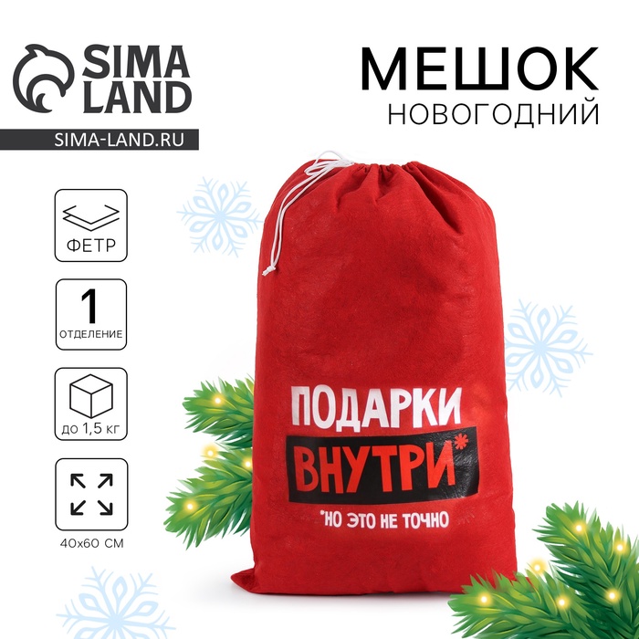Мешок новогодний Деда Мороза «Подарки внутри», , 40 х 60 см.