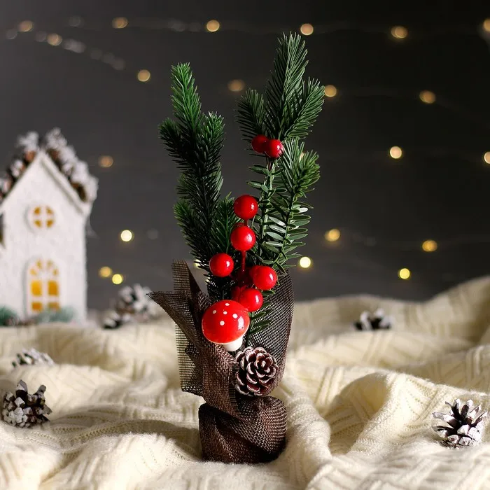 Новогодняя композиция «Веточка с ягодками», 15 × 15 × 29 см