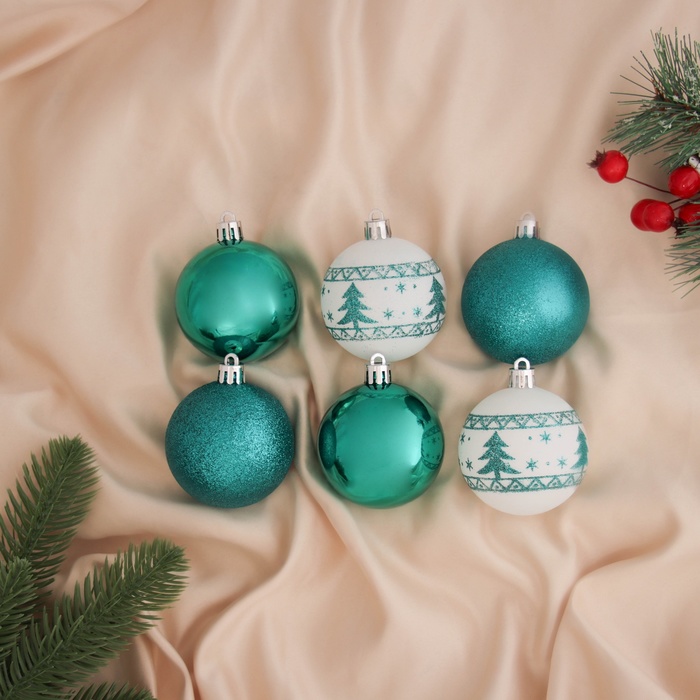 Ёлочные игрушки «Изумрудик-ёлочка», шары новогодние, d=6 см, набор 6 шт.,бело-зелёный