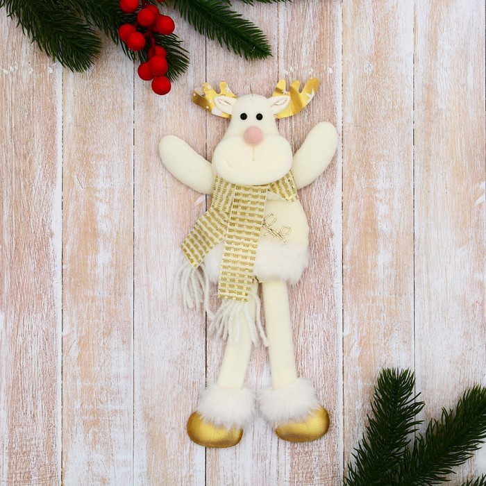 Подвеска мягкая на ёлку «Олень в костюмчике с цветами, длинные ножки» 8×24 см, золотистая