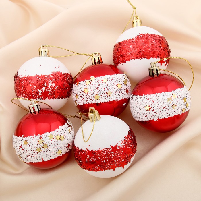 Ёлочные игрушки «Звёздный поясок», шары новогодние, набор 6 шт., d=6 см, красный
