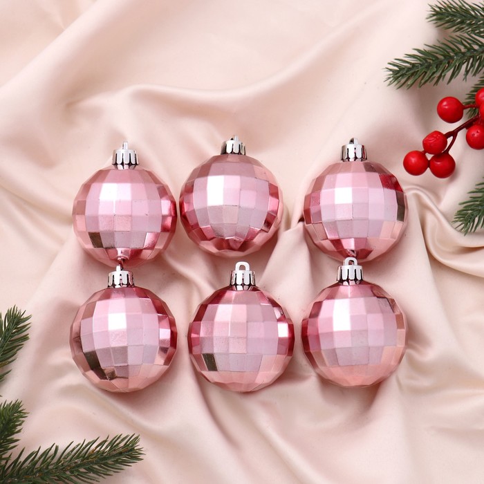 Ёлочные игрушки «Диско дни», шары новогодние, d=6 см, набор 6 шт., розовый