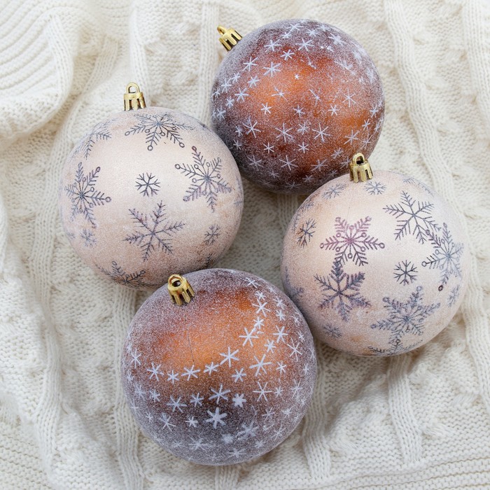 Ёлочные игрушки «Морозное утро», шары новогодние, d=10 см, набор 4 шт., коричневый