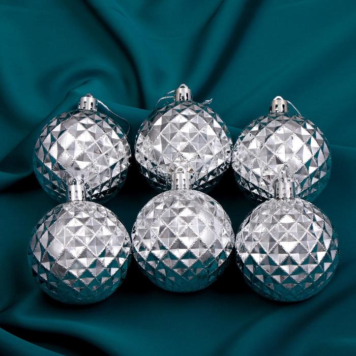 Ёлочные игрушки «Объёмная сеточка», шары новогодние, d=6 см, набор 6 шт., серебро