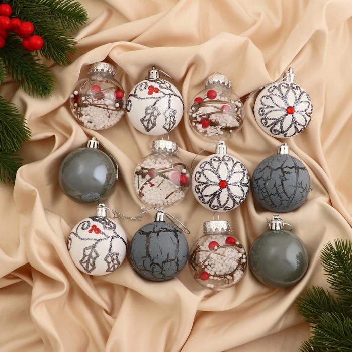 Ёлочные игрушки «Мелодия», шары новогодние, набор 13 шт., 6 см, серый