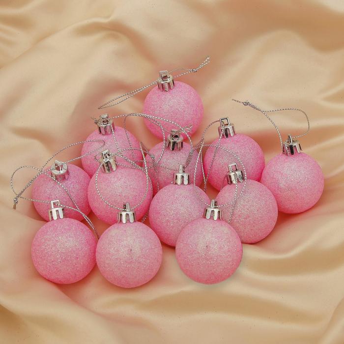 Ёлочные игрушки «Перелив», шары новогодние, d=4 см, набор 12 шт., розовый