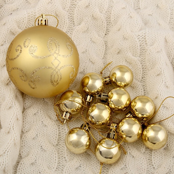 Ёлочные игрушки, шары пластик 11 шт "Глория - вензель" золото 4192755