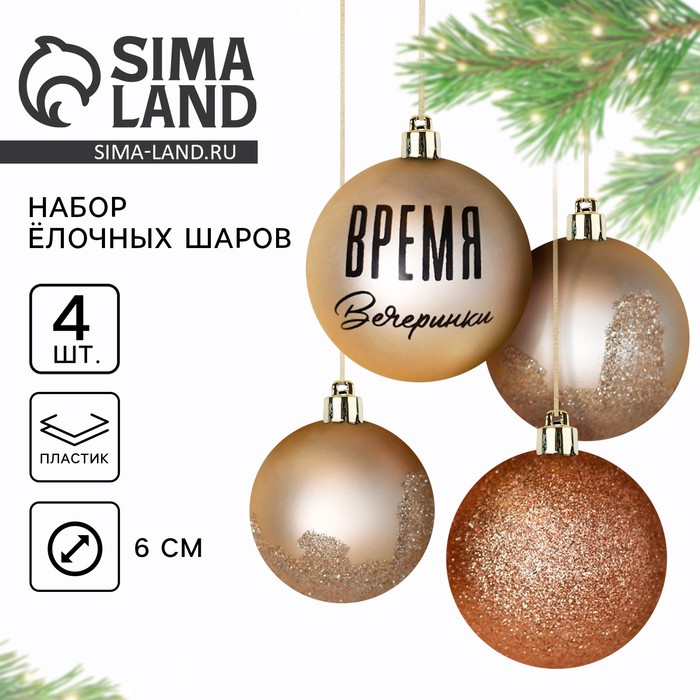Новогодние шары ёлочные «Время вечеринки», пластик, d=6, 4 шт., цвет жемчужный