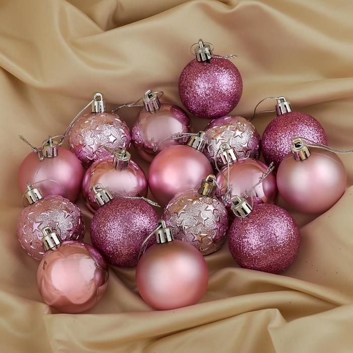 Ёлочные игрушки «Звёздная ночь», шары новогодние, набор 16 шт., d=5 см, розовый