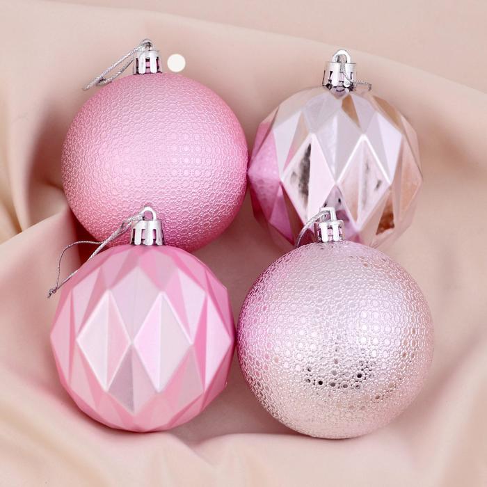 Ёлочные игрушки «Геометрия форм», шары новогодние, d=7 см, набор 4 шт., розовый