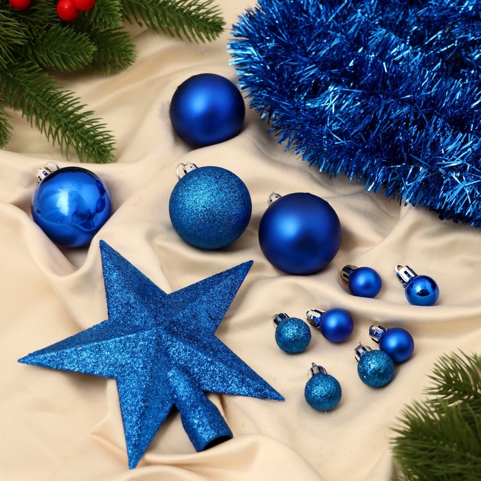 Ёлочные игрушки «Звёздное небо», новогодние, набор 54 шт., мишура 2.5 см, синий