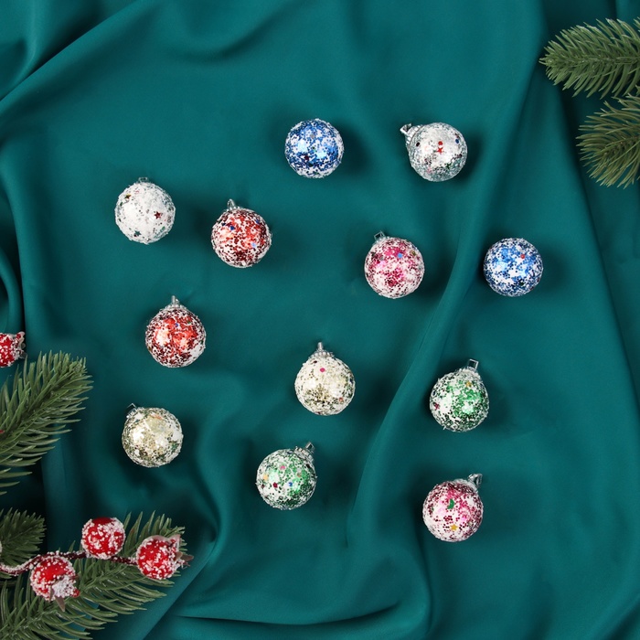 Ёлочные игрушки «Цветная посыпка», шары новогодние, d=3 см, набор 12 шт.