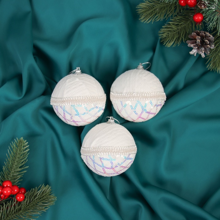 Ёлочные игрушки «Новелла перламутр», шары новогодние, d=8 см, 3 шт., белый