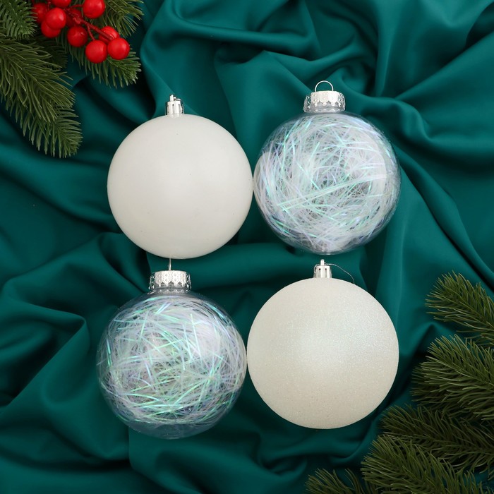 Ёлочные игрушки «Мелодия», шары новогодние, d=10 см, набор 4 шт., диско ассорти, белый