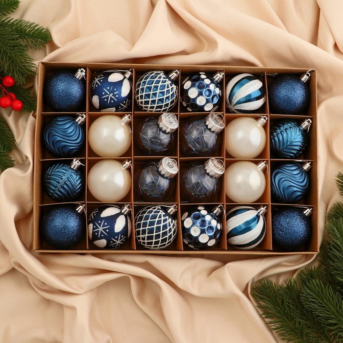 Ёлочные игрушки «Мелодия» ассорти люкс, шары новогодние, d=6 см, набор 24 шт., бело-синий
