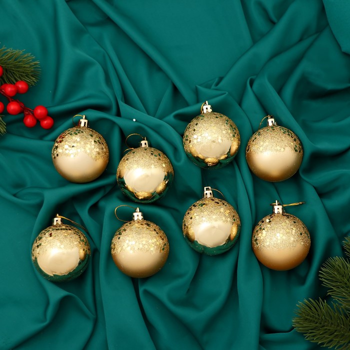 Ёлочные игрушки «Волшебство», пластиковые, набор 8 шт., d=5.5 см, золотистый