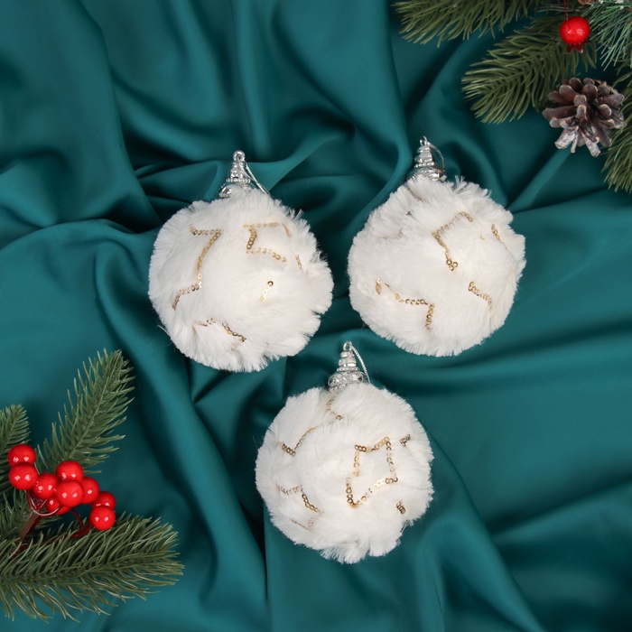 Ёлочные игрушки «Нежность», шары новогодние, d=8 см, набор 3 шт., звезда, белый