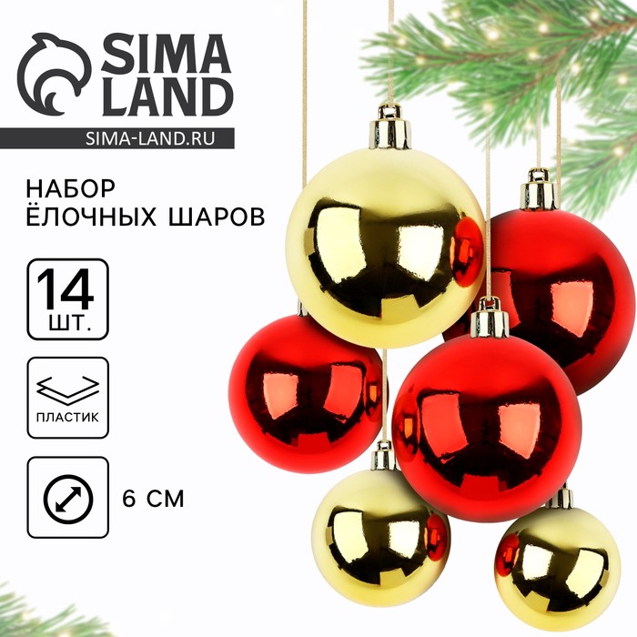 Шары ёлочные новогодние, d=6 см, 14 шт., красный, золотой