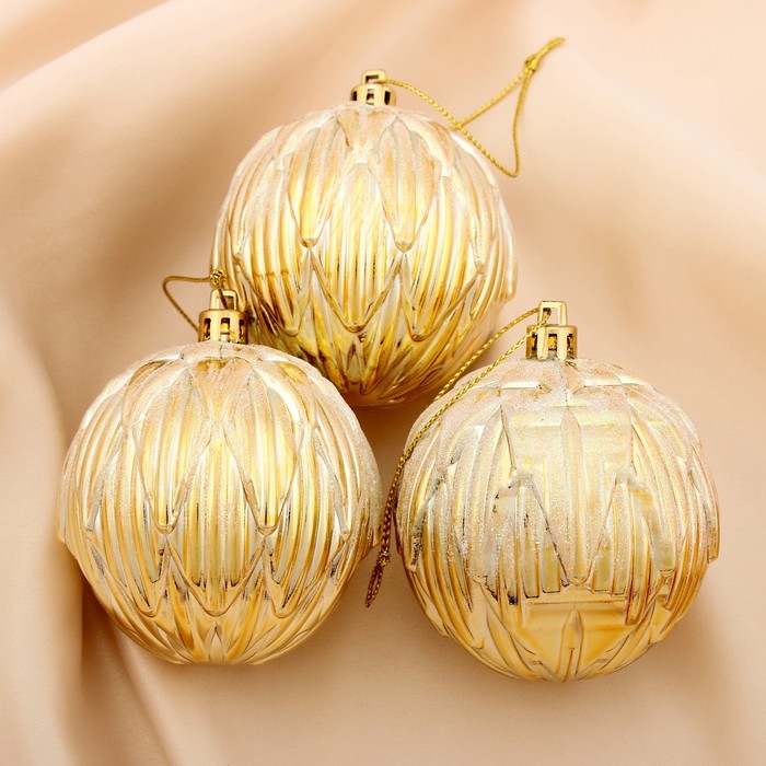 Ёлочные игрушки «Иней», шары новогодние, d=7 см, набор 3 шт., золотистый