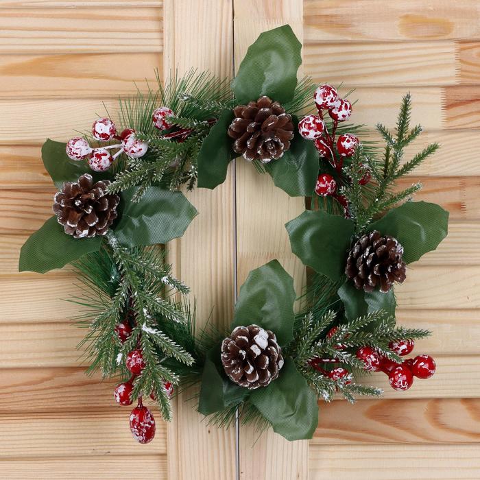 Венок новогодний «Зимнее волшебство. Глория», d=18 см, с шишками и ягодами