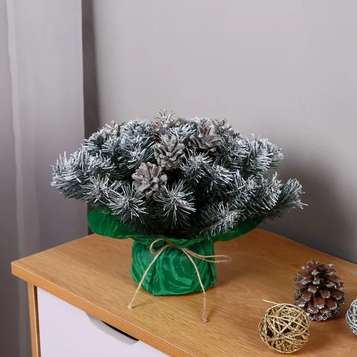 Новогодняя хвойная композиция на стол 25 см «Классическая белоснежная» на дверь, на стену, декор шишки серебро