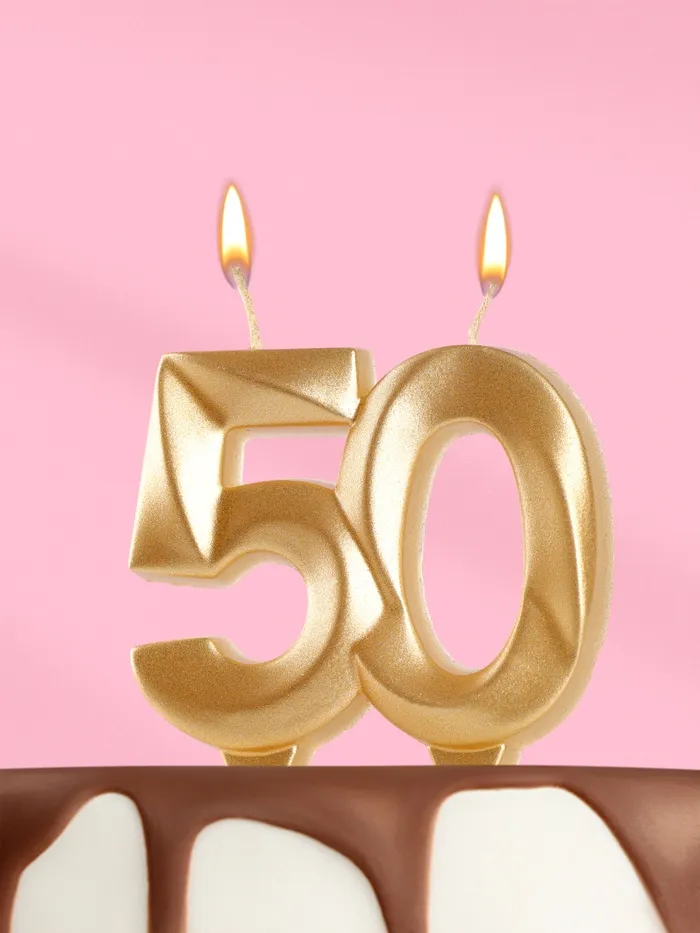 Свеча в торт юбилейная «Грань», цифра 50, золотой металлик, 6.5 см