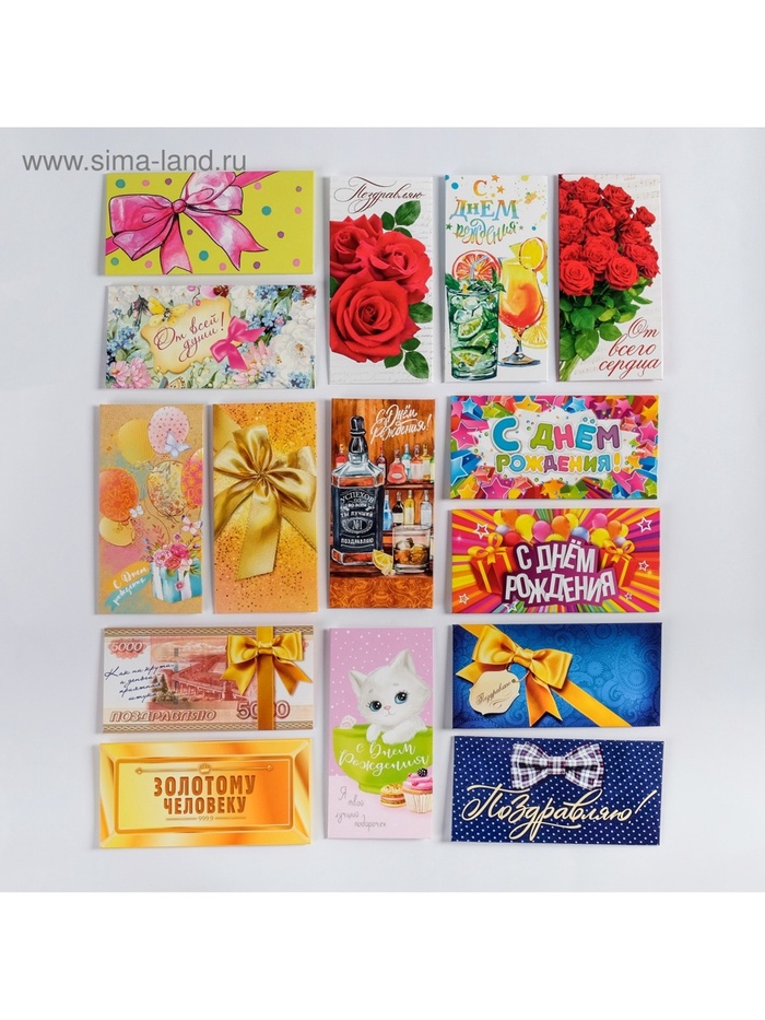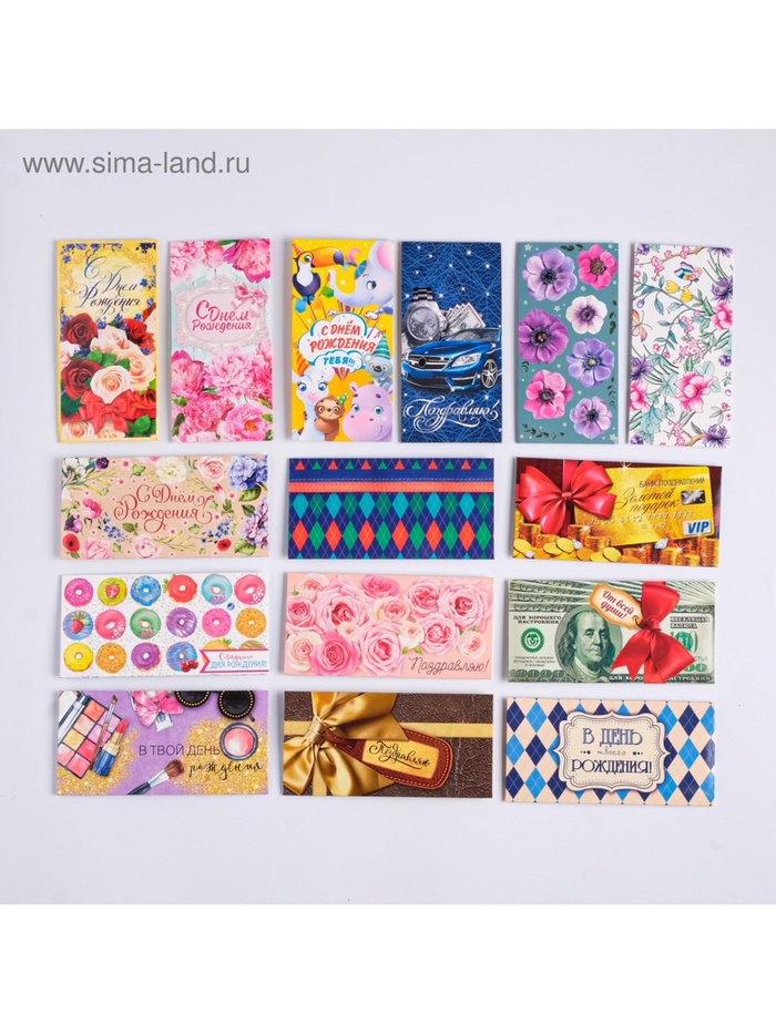 Набор конвертов для денег «С Днем Рождения», 15 шт.