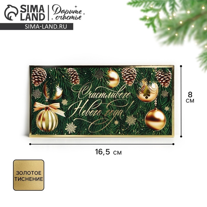 Конверт для денег «Счастливого Нового года», шары, тиснение, 16.5 х 8 см