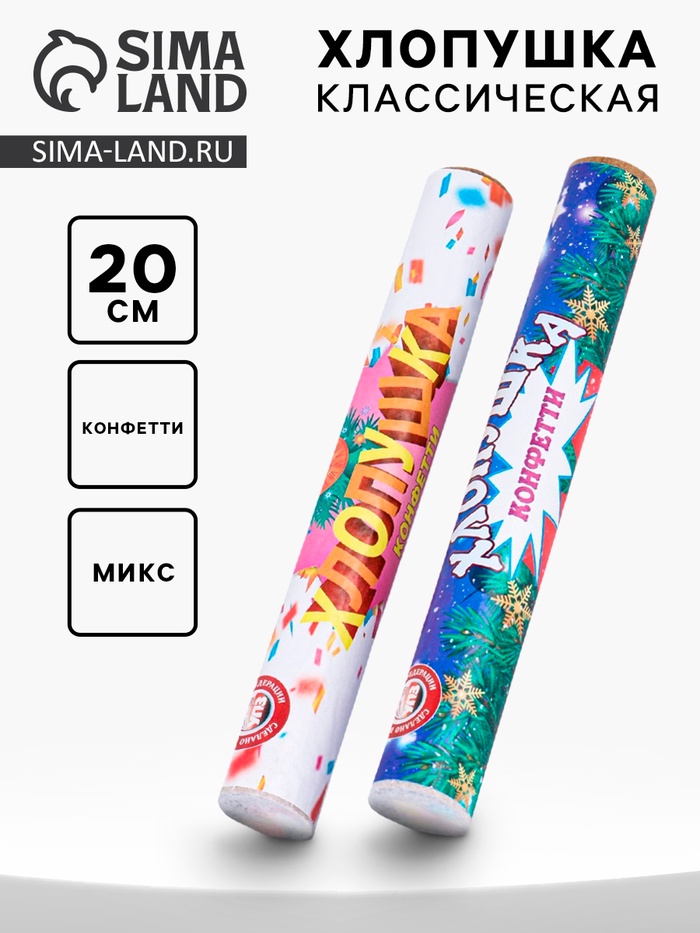 Хлопушка классическая с конфетти и серпантином, 20 см