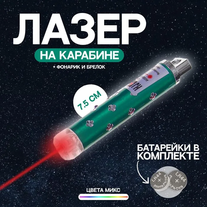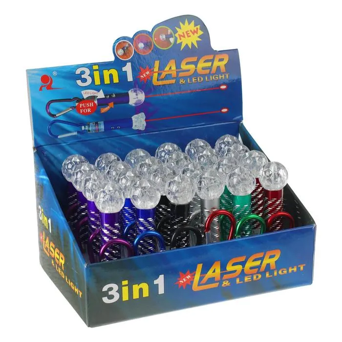 Фонарик «Шар», на карабине, с лазером, светящийся, цвета МИКС