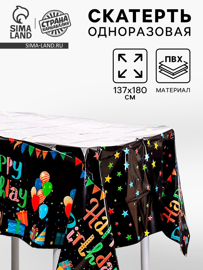 Скатерть одноразовая «С днём рождения», 137×183 см, чёрная