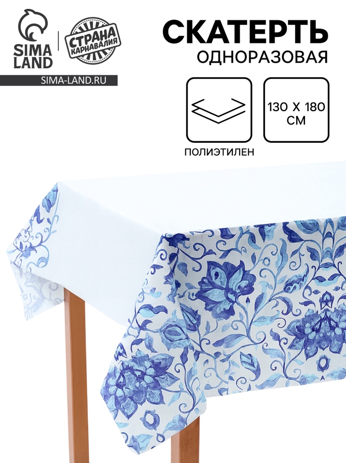Скатерть одноразовая «Синие Узоры», 130×180 см