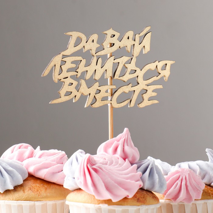 Топпер "Давай лениться вместе" на подвесе, золотой Дарим Красиво