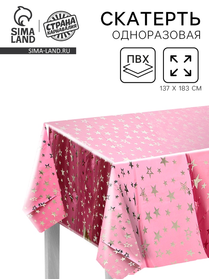 Скатерть одноразовая на стол «Звёзды», 137×183 см, розовая