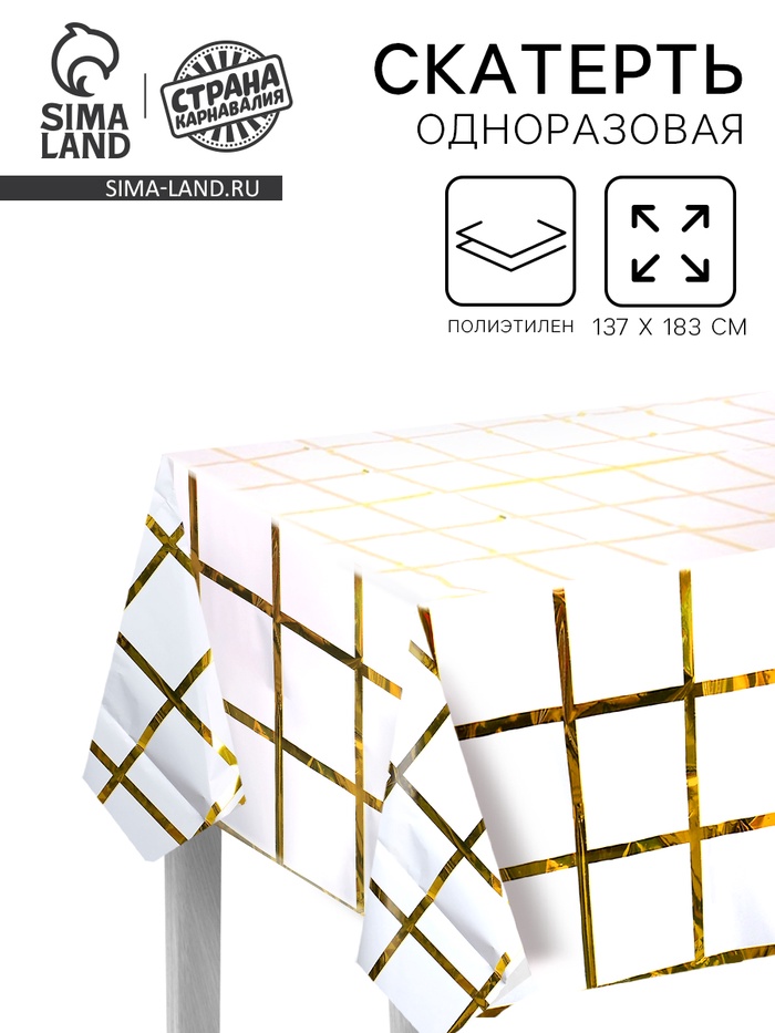 Скатерть одноразовая на стол в клетку,137×183 см, белая