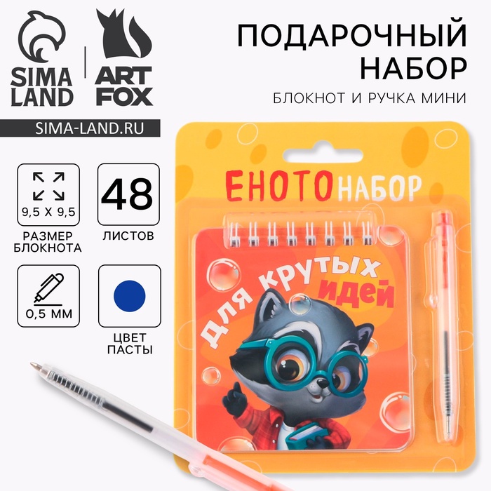 Канцелярский набор блокнот 48 листов + ручка «Для крутых идей», 13,5 см х 15 см.